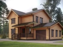 المساكن المصنوعة من الخشب ، التي أقيمت مع مرآب ، مريحة للغاية وعملية.. ضع في اعتبارك مشروع وتخطيط مثل هذا البناء بمساحة 230 مترًا مربعًا. م (مقاييس عامة – 16.3×10 م). يوفر المسكن وجود علية ونوافذ ناتئة.