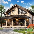 يرغب الكثير من الناس في العيش في منزل خشبي مريح به تراس.. دعونا نلقي نظرة فاحصة على مشروع مسكن مماثل من طابقين. منزل جميل جدا وكبير بمساحة 220 متر مربع. م أبعاد المبنى بالمتر – 12×10.4 م.
