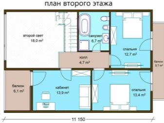 في هذا المسكن ، المكمّل بعلية ونوافذ ناتئة ، يجب أن يكون هناك عزل عالي الجودة بين التاج. يوفر المشروع سلم ثابت دائم يؤدي من الطابق الأول إلى الطابق الثاني. بالنسبة للبناء ، يكون نوع الأساس الشريطي أو الوبر أو العمودي مناسبًا..