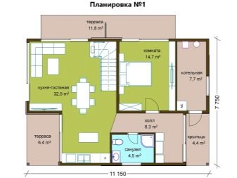 يمكن استخدام الخشب الرقائقي اللاصق لبناء منزل فاخر من طابقين بمساحة 150 مترًا مربعًا. م الأبعاد العامة للمبنى – 11×7.7 م.