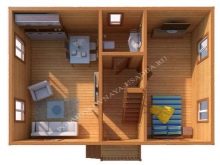 في ظروف مثل هذا المنزل الخشبي الجذاب ، سيكون من الممكن تجهيز الغرف الوظيفية التالية: