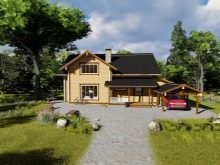 يتضمن مشروع المسكن مع المرآب استخدام عزل البازلت وأغشية حاجز البخار والأبواب المعدنية ودرج دائم. في هذا المنزل الخشبي ، يتم توفير هياكل نافذة كبيرة..