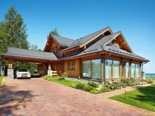 المساكن المصنوعة من الخشب ، التي أقيمت مع مرآب ، مريحة للغاية وعملية.. ضع في اعتبارك مشروع وتخطيط مثل هذا البناء بمساحة 230 مترًا مربعًا. م (مقاييس عامة – 16.3×10 م). يوفر المسكن وجود علية ونوافذ ناتئة.