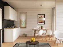 كانت هذه المادة مطلوبة لعدة قرون ، فهي تجذب بخصائصها البيئية والقدرة على خلق مناخ داخلي مثالي.. يمكن الانتهاء من الخشب ليس فقط من الخارج ، ولكن أيضًا من الداخل ، والذي يستخدمه البناؤون بنشاط. وتجدر الإشارة إلى أنه مع مثل هذه الكسوة ، سيبدو الجزء الداخلي دافئًا وممتعًا من الناحية الجمالية. باستخدام نفس الطريقة ، يمكنك إنشاء وهم السكن من منزل خشبي طبيعي. تعتبر الكسوة الخشبية رائعة للجدران الخرسانية الخلوية حيث أن المواد لها أوجه تشابه تقنية. كل منها لديه قابلية تهوية ممتازة وموصلية حرارية ممتازة.