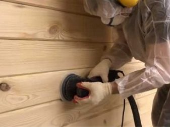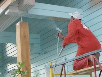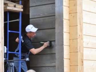 - المعالجة الأولية للمادة مطلوبة ، أي في حالة وجود مخالفات ، سيكون من الضروري لصق الواجهة الخشبية للمنزل ، وبعد ذلك يكون من الضروري بالفعل تطبيق الطلاء.