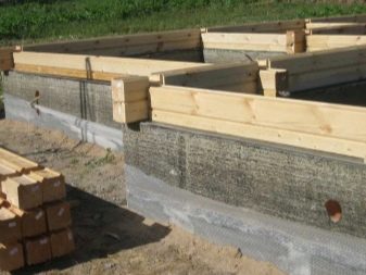 بعد الانتهاء من وضع الأساس ووضع طبقة من العزل المائي ، يجب تثبيت الصف الأول من الأخشاب بعناية ، باستخدام براغي التثبيت والبراغي ذاتية التنصت للخرسانة كملحق ، والتثبيت في ثقوب أصغر قليلاً من قطر الخيط.