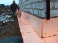 يمكن تنفيذ تدفئة armopoyas ليس فقط أثناء بناء المنزل ، ولكن حتى بعد ذلك (بعد مرور بعض الوقت). لكن يتم تنفيذ الإجراء حصريًا خارج المبنى. للعمل ، يوصى باستخدام ألواح رغوية بسماكة 80 مم. يتم حساب الارتفاع وفقًا للمبدأ التالي: يتم تثبيت العزل الحراري على ارتفاع 15 سم وتحت الحزام المقوى لإطالة عمر الخدمة, من المهم وضع المد والجزر مع التنقيط ، والذي سوف يحول الذوبان ومياه الأمطار ، ويجب وضعه بمنحدر طفيف من الجدار.