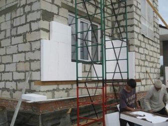 انتبه إلى الألواح التي تبلغ كثافتها B24 ، ولا يقل سمكها عن 100 مم ، أو استخدم تثبيتًا من طبقتين. عند التثبيت ، يجب أن تتداخل الألواح مع الفجوات بين الوصلات السفلية ويجب سد الفجوات العلوية لتقليل النفخ. يمكن لصق الستايروفوم بالغراء أو ملاط رمل الأسمنت ، لكن لا يمكنك الاستغناء عن المسامير البلاستيكية.