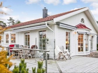 يتميز مشروع منزل سويدي نموذجي بصغر حجمه (نادرًا ما يزيد عن 300 متر مربع لاستيعاب كل ما تحتاجه). لذلك ، يتم الالتزام بمبدأ الإيجاز والمحاسبة الصارمة للمساحة الحرة في الداخل. يتم استخدامه بشكل عقلاني ، لكنهم يحاولون خلق انطباع بالرحابة ووفرة الضوء – لذلك ، يتم استخدام النوافذ الموسعة والنوافذ ذات الزجاج المزدوج. هذا مطلوب من قبل مناخ ساحلي مع رطوبة عالية ورياح ثابتة..