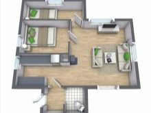 - يوفر التصميم جميع المباني اللازمة للمعيشة, لكن يتم بناء منزل صغير بدون حواجز داخلية حتى لا تضيع مساحة المعيشة عليها. وإذا كان الحجم يسمح بذلك ، فإن المنزل يحتوي على غرف نوم صغيرة ، وحمام به دش وآخر للاستحمام ، ومخازن ، وبياضات ، وغرف تبديل ملابس ، ومطبخ واسع وغرفة معيشة بمساحة كافية بحيث يمكن لجميع أفراد الأسرة القيام بذلك. تجمع فيه..