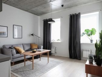 في الداخل ، يمكن إنشاء الانطباع المرغوب بمساعدة الاختيار الدقيق للمنسوجات والأثاث ، وغياب الأقسام ، والتنسيق المنطقي للمساحة..