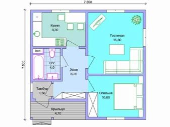 عند اختيار مخطط لمنزل من طابق واحد ، من المهم عدم تعقيده كثيرًا. إذا كنا نتحدث عن مباني للاستخدام الموسمي ، فسيكون ذلك كافيًا لتجهيز مطبخ وحمام وغرفة مشتركة مع أماكن للنوم..