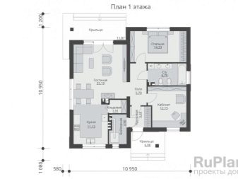 - منزل مع شرفة. يمكن تحويل المساحة الإضافية حول المبنى بسهولة إلى مكان للاسترخاء أو لعب الأطفال. شرفة السطح تتحول بسهولة إلى مطبخ صيفي.