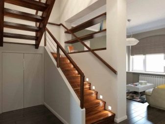 يوضع الدرج عادة على طول أحد الجدران الفارغة ، ويخطط بعناية لانحداره. إذا كان هناك أطفال صغار وكبار السن في المنزل ، فأنت بحاجة إلى الاعتناء بالسور أو تجهيز إحدى غرف النوم أدناه.