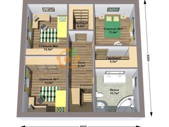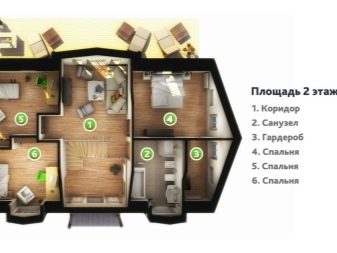 تم تصميم الطابق الثاني بشكل أكثر تنظيمًا. هنا ، توجد قاعة بالقرب من الدرج ، ويتم أخذ غرف أخرى منها ، مما يجعلها متساوية في المساحة تقريبًا. عند بناء منزل صيفي للإقامة الدائمة ، عليك التفكير في موقع وعدد الحمامات. يُنصح بعمل حمام إضافي في الطابق الثاني لعائلة بها أطفال. يمكنك أيضًا توفير غرفة لارتداء الملابس.