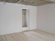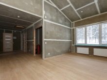 في الطابق الأرضي ، بين الشرفة والممر ، يوجد بهو لا يسمح بدخول البرد من الشارع إلى المنزل. من المدخل يمكنك الدخول إلى غرفة المعيشة والحمام وغرفة المرجل والصعود إلى طابق العلية. القاعة والمطبخ متحدان بمدخل مشترك.