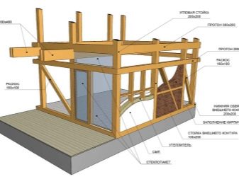 خصوصية التكنولوجيا في وجود لوحة رأسية (أذرع) في الإطار ، تتحرك بزاوية 45-55 درجة وتصل بين الرفوف. للكسوة ، يتم استخدام ألواح OSB فقط ، فهي صلبة ومتينة ، ولكنها لا “تتنفس”. بسبب نقص نفاذية البخار ، بمرور الوقت ، يمكن أن تتعفن طبقة العزل.
