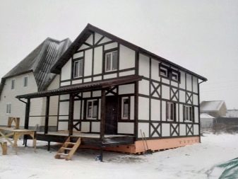 التكنولوجيا باهظة الثمن ، كما يطلق عليها بعد شعاع بسبب الأجزاء الشبكية للإطار. يمكن تعيين الأقسام في أي زاوية. يستخدم OSB لبناء الجدران ، كما يتم وضع الألواح الخرسانية المصنوعة من الزجاج أو الطين ، ويمكن استخدام الطوب. من سمات التكنولوجيا الألمانية الإطار ، الذي يصبح جزءًا متباينًا من ديكور المبنى ، لأنه ليس مخفيًا ، بل معروضًا. بفضل تقنية نصف خشبية ، يتم الحصول على مبنى أصلي وموثوق ، ولكن ليس معزولًا بشكل كافٍ.