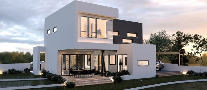 لبناء منزل بمثل هذه الخطة ، أولاً ، يتم إنشاء إطار من الخشب الصلب المجفف بالفرن أو التشكيلات المعدنية ، وفي بعض الأحيان يتم استخدام خيار مدمج. يمكن رفع المبنى على أي أساس.