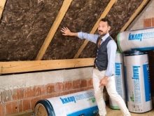 قبل تغليف الجدران الداخلية والخارجية ، تمتلئ الفراغات الموجودة في الإطار بالعزل: