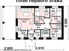 اختر المشاريع الجاهزة للمنازل التي يبلغ ارتفاعها طابقين حتى 100 متر مربع. م أو أي منطقة أخرى يجب أن تكون بحذر شديد ودقة. يتضمن أحد هذه الخيارات ترتيب غرفة معيشة بمساحة 12.6 مترًا مربعًا. م تتصل مباشرة بمطبخ متواضع (2.8 متر مربع). يوجد أيضًا في الطابق الأرضي 3 غرف نوم كبيرة نسبيًا.. بالإضافة إلى ذلك ، يجهزون هنا: