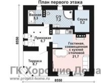 في هذا الإصدار ، تم تخصيص ساونا بطول 5 أمتار بدلاً من ذلك. لكن, من حيث الاتصالات ، لا يوجد فرق ، ولكن هناك فقط التفاصيل الفردية للترتيب. لتهيئة بيئة مريحة ، يتوفر أيضًا حمام بطول 7 أمتار. غرفة المعيشة 21.7 متر مربع. م مع مطبخ ومنطقة لتناول الطعام. بالإضافة إلى ذلك ، يوجد حمام وقاعة مدخل وشرفة بطول 8 أمتار..