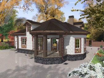 يمكن أن تكون نافذة الخليج هي النقطة المحورية للهندسة المعمارية. على سبيل المثال ، من ناحية ، يمكن استكماله بشرفة مفتوحة أو شرفة مع مظلة ، من ناحية أخرى ، مرآب مغطى. تم إنشاء الخطة مع مراعاة مدخل مناسب للمنزل.