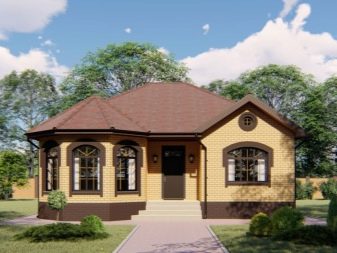 تتميز المشاريع الجاهزة للمنازل المكونة من طابق واحد مع الشرفة الأرضية بمجموعة متنوعة من التصاميم. في الوقت نفسه ، لا يمكن أن تكون حواف النوافذ الكبيرة صغيرة فحسب ، بل أيضًا غير قياسية. يمكن أن تكون النتوءات الكبيرة شكلًا غير عادي لجدار غرفة الضيوف..