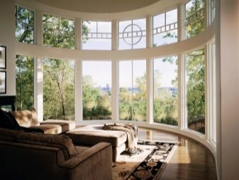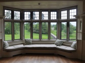 يعتبر التزجيج في نوافذ الخليج الكلاسيكية واضحًا ومرنًا في النوافذ شبه الدائرية والخليجية الدائرية. في بعض المشاريع ، هو مقوس. يعتمد سقف النوافذ الكبيرة على شكل الحافة ، لذلك لا يمكن أن يكون نموذجيًا فحسب ، بل يمكن أيضًا أن يكون مستديرًا على شكل قبة.