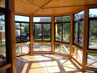 يمكن أن يكون تزجيج الوحدات تقليديًا وبانوراميًا. في بعض المشاريع ، تكون الجوانب صماء (بدون زجاج). تم بناء المنازل نفسها مع نافذة كبيرة من مواد بناء مختلفة (كتل الرغوة والطوب والخشب).