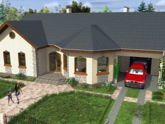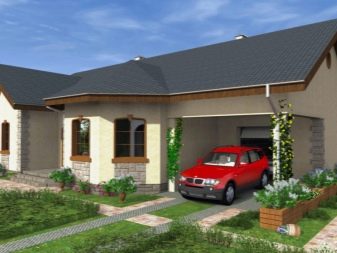 تتميز هذه الهياكل بمنظور ممدود.. أثناء البناء ، غالبًا ما يتم إجراء مدخل منفصل من المرآب إلى المنزل. يمكن أن يكون للملحق جدار مشترك مع حافة نافذة كبيرة.