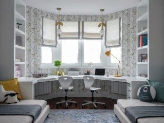 سيحب شخص ما فكرة تأثيث مكتب أو ركن إبداعي. في هذه الحالة ، يتم تثبيت طاولة وخزانة ملابس صغيرة أو رف وكرسي هنا. في مثل هذه الزاوية الهادئة ، يمكنك الاسترخاء وقراءة كتابك المفضل.