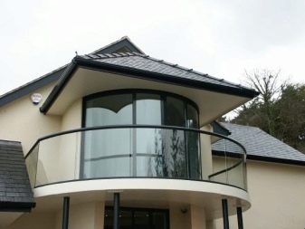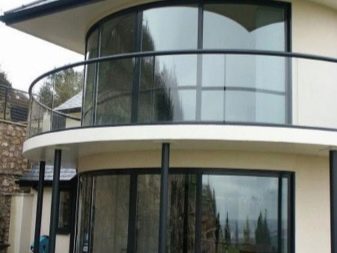 مشروع نموذجي لمصمم حديث – منزل بزجاج بانورامي. واجهته مستديرة الشكل بفضل النوافذ الكبيرة.