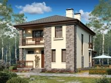 أشهر مشاريع المنازل الحديثة هي أكواخ من طابقين مع شرفة أو تراس.. في الطابق الأرضي ، سيتم تجهيز منطقة مشتركة ومطبخ ومباني ملحقة. يوجد في الطابق الثاني غرف خاصة: مكتب وغرف نوم. على سبيل المثال ، منزل صغير مريح بمساحة 115 مترًا مربعًا. م.