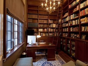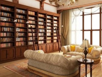 عادة في مثل هذه المنازل ، يمكنك ملاحظة المكتبة المنزلية ، والتي تعتبر اليوم بالفعل عنصرًا من عناصر العصور القديمة..