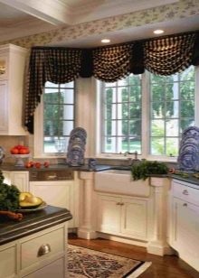- فرنسي. الستائر الرأسية مع الأقمشة تبدو مبهجة ومسرحية ، وتستخدم في الديكورات الداخلية الباروكية.