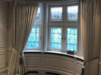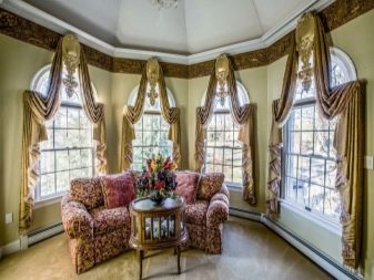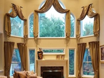 - ذو شكل غير منتظم. من الصعب تكييف الأثاث مع النوافذ الكبيرة ذات الأشكال الهندسية المكسورة ، وعليك أن تطلب بشكل فردي للأحجام المتوفرة. سيكون عليك أيضًا العمل بجد مع زخرفة النوافذ. في منزل خاص ، حيث يحمي السياج العالي الموقع من أعين المتطفلين ، يمكنك خلق الراحة بمساعدة لامبريكين ، أي الاستغناء عن الستائر تمامًا. ولكن إذا كانت الخصوصية مطلوبة ، يتم تثبيت الستائر الدوارة على كل نافذة على حدة ، كما في حالة الحواف متعددة الأوجه..
