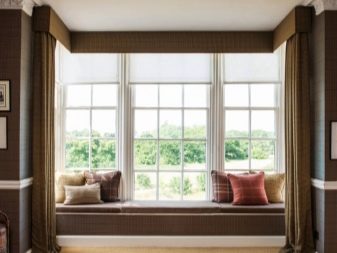 لإنشاء نافذة كبيرة ، يتم استخدام دعامات مستقلة وعوارض أفقية ، مما يمنحها الفرصة لتكون أعمق وإضافة ليس فقط زخرفية ، ولكن أيضًا عدادات حقيقية إلى الغرفة.