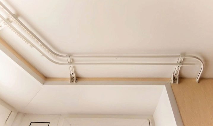 يتكون الكورنيش من قضبان منحنية خفيفة ، مثبتة معًا بواسطة وصلات مفصلية ، والتي يمكن ضبطها عن طريق ضبط التعليق بالزاوية المرغوبة. لا يمكن أن تمر الستائر فوق أدوات التوصيل ، لذا يجب تعليقها بقدر وجود قضبان في الهيكل.