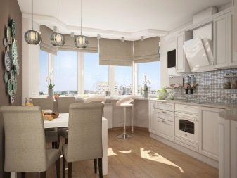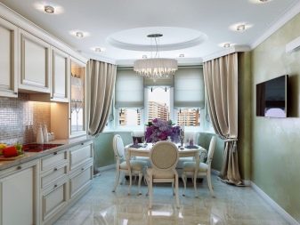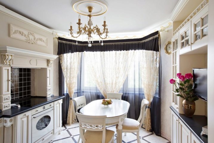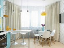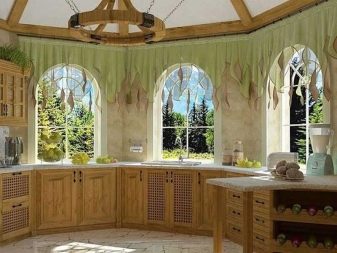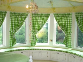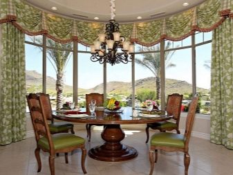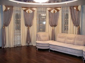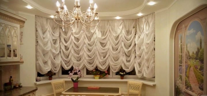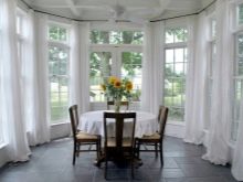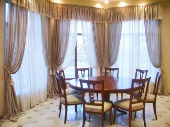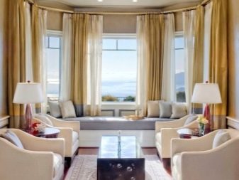 زخرفة نوافذ الخليج في الغرف ذات الأغراض المختلفة ليست هي نفسها. على سبيل المثال ، يتم تعليق المنسوجات الأكثر تكلفة والأكثر تطوراً في القاعة عنها في المطبخ. تقسيم المناطق للحافة مهم أيضًا.