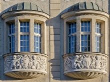 كحد أدنى ، يمكن أن تحتوي النافذة الكبيرة على نافذتين إذا كانت بارزة خلف جدار المبنى بزاوية واحدة فقط. يعطي الحد الأقصى لعدد النوافذ (5-9) هياكل بارزة كبيرة متعددة الأوجه.
