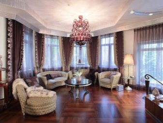- الثلاثي. تسبب الحافة الركنية المتاعب للمصمم ، وتكتسب الغرفة ركنًا إضافيًا (خامسًا) ، وليس من السهل ترتيب الأثاث بشكل متناغم في مثل هذه الظروف. لكن لا توجد مشاكل في زخرفة النوافذ. لا يوجد سوى اثنين منهم ، يمكنك العمل على كل منهما بنفسك ، مع منح إفريز منفصل ونسيج نسيج.
