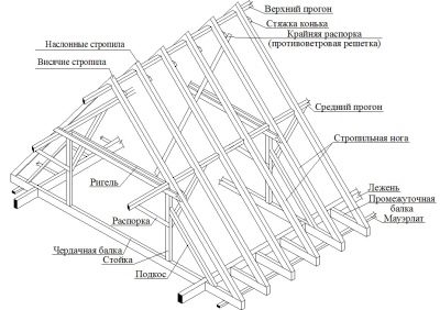 يتضمن أي هيكل سقف متحمل عارضة من التلال والعوارض الخشبية التي تؤدي وظائف مختلفة.. مع الأخذ في الاعتبار زوايا ميل منحدرات السقف ، يمكن تمييز الأنواع الرئيسية التالية من هذا الأخير.