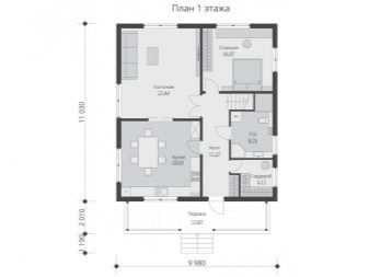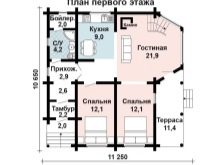 في هذا الإصدار ، تبلغ مساحة الشرفة 22 مترًا مربعًا. يمكنك الوصول منه إلى الدهليز الذي يتواصل مع الرواق وغرفة المرجل. تبلغ مساحة غرفة المطبخ وتناول الطعام 15.4 مترًا مربعًا. من السهل تحضير الطعام ووضعه على المائدة أثناء الإفطار أو الغداء أو العشاء. التركيبة تكملها غرفة المعيشة وغرفة النوم والحمام..