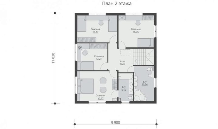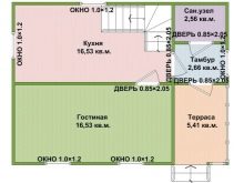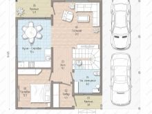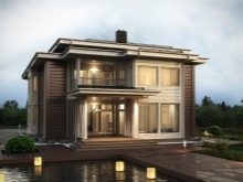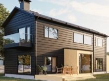 يمكنك أيضًا اختيار نسخة أخرى من منزل من طابقين بنوافذ كبيرة. يوجد تراس ودهليز. سيُلهم المطبخ الذي يبلغ ارتفاعه 17 مترًا حتى أولئك الذين لا يحبون الطهي كثيرًا. يحتوي الطابق العلوي على زوج من الشرفات.