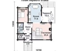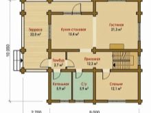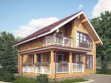 الإصدار الريفي الكلاسيكي لمنزل خشبي من طابقين هو منزل خشبي. يساعد تنويع مظهره على تصميم ليس المعتاد ، ولكن الطابق العلوي في العلية. بالإضافة إلى ذلك ، يوجد أيضًا تراس تبلغ مساحته حوالي 10 أمتار مربعة. م لا تدع الأمر يبدو كثيرًا ، لكنه لا يزال كافياً لمعظم الأغراض. يعد الطهي في المطبخ الذي يبلغ طوله 10 أمتار ممتعًا أيضًا..