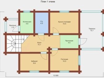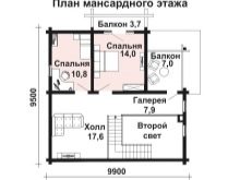 للحصول على أقصى قدر من الضوء ، اتضح أن هذا الحل مقبول تمامًا.. لكن كل مشروع لا يزال مميزًا جدًا وليس مثل الخيارات الأخرى. في هذه الحالة ، تم تجهيز غرفتي نوم وغرفة مرجل في الطابق الأرضي. يوجد معرض بطول 15 مترًا في الطابق العلوي. يوجد أيضًا شرفة بمساحة 6.8 متر مربع.