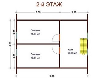 يمكنك أيضًا التفكير في الخيار مع منزل من غرفتين من طابقين. في الطابق الأرضي ، تم تجهيز غرفة معيشة ومطبخ وحمام ودهليز. شرفة مجاورة لهم. فقط غرفة النوم في الطابق العلوي. حجم النافذة 1×1.2 م.