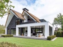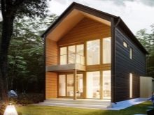 يمكن أن تبدو الجدران الخشبية البسيطة جميلة ورشيقة أيضًا. عدد كبير من النوافذ الكبيرة تمنحهم سحرهم. الشكل الأصلي للهياكل يستحق الترحيب أيضًا. ليس فقط السقف ، ولكن أيضًا جدران المسكن يمكن أن يكون لها شكل معقد. حتى لونها تم اختياره بمهارة شديدة ويتميز بتوازن لوني بارع..