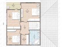 تتضمن إحدى خطط المنزل الذي يبلغ ارتفاعه طابقين التخصيص في الطابق الأرضي ، بالإضافة إلى التراس:
